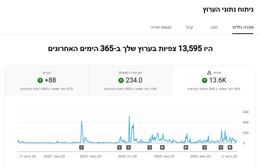 אז בואו נראה כמה נתונים מעניינים מאחורי הקלעים על מה שהתרחש בשנה האחרונה בערוץ שלי: